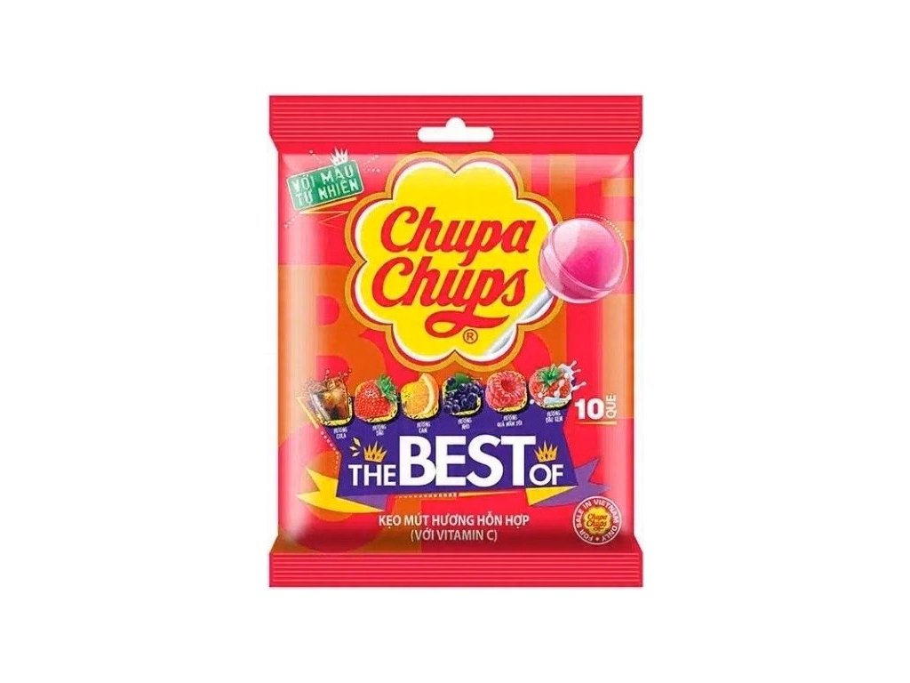 Ingrediente: Zahăr, sirop de glucoză, permeat de lapte praf, regulatori de aciditate (270, 296, 330), lapte praf, amestec de piure de fructe, arome naturale și identice cu cele naturale, vitamina C (1,0 mg/g), unt de cacao, coloranți naturali (150d, 160c(i), 163(v), 162, 153).