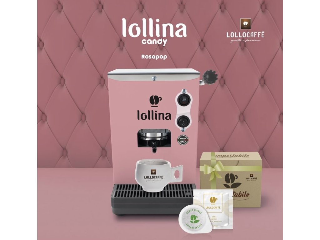 Aparat de cafea Lollo Caffe pe ESE PODS LOLLINA Rosapop roz + 40 ESE PODS