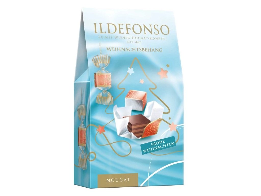 Șapte straturi de nuga închisă și deschisă tăiate în cuburi fine și mici.