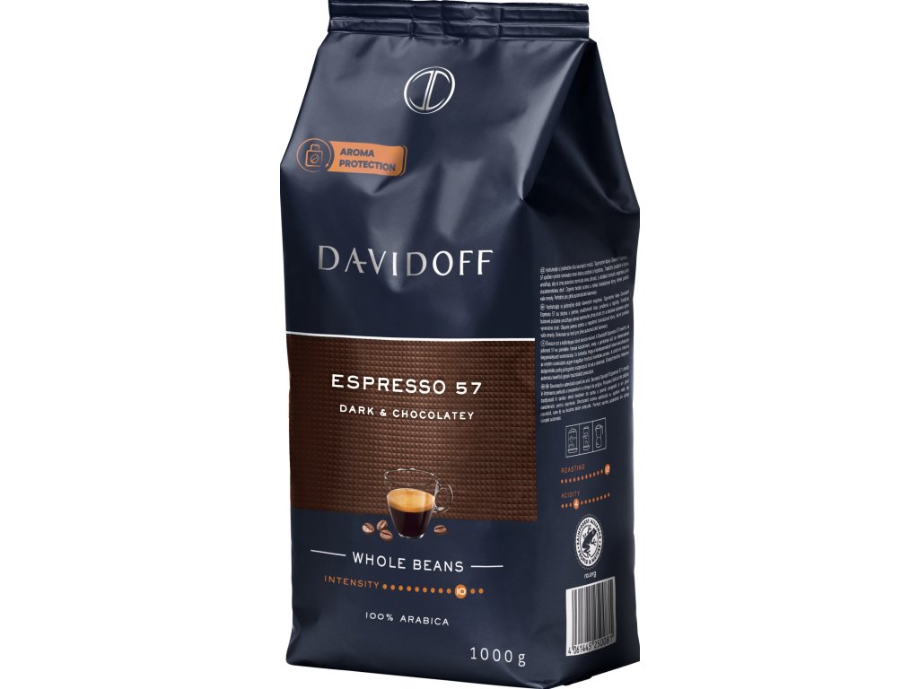 Davidoff Espresso 57 conține un amestec din cele mai fine boabe de cafea Arabica din Africa, America Latină și Pacific.