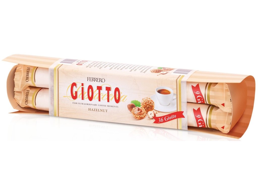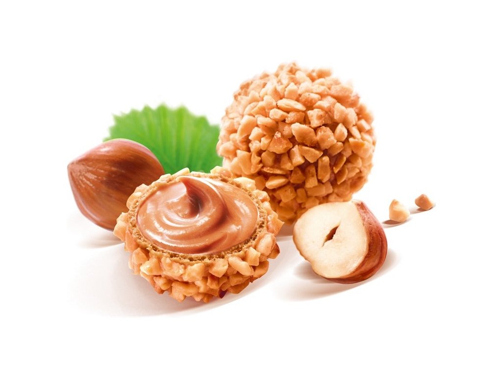 Napolitană crocantă cu o umplutură delicată de lapte și alune (45%).