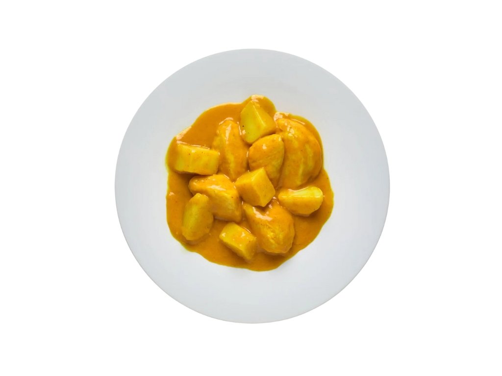 Pui suculent și cartofi moi acoperiți cu un sos cremos de curry. Un preparat cu un gust exotic si irezistibil, ideal pentru iubitorii de arome bogate si picante.
