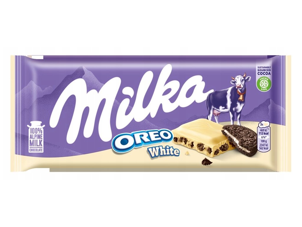 Milka Oreo White Milka ciocolata alba ciocolata si bucati de biscuiti 80g